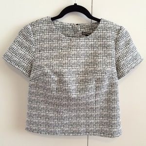 Never worn Express boxy cropped top with tweed pattern. Exposed zipper in back. Size XS