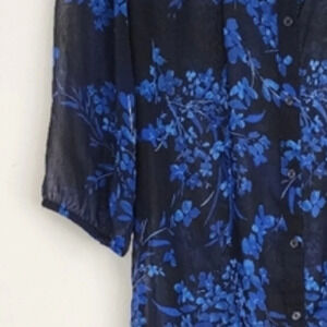 Express Brand Women's Sheer Overlay Dress Blue & Black Print Button-down Size L