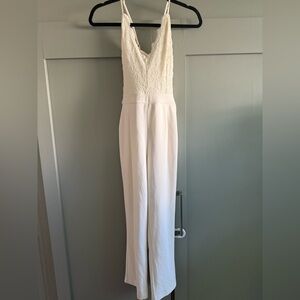 Express Bridal White Lace Embellished Jumpsuit Wedding Size S Crossed Straps