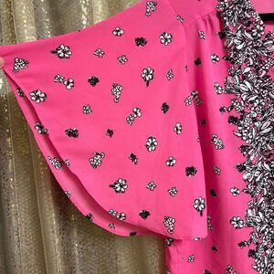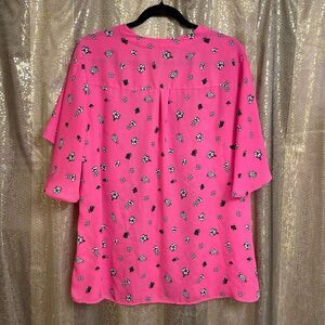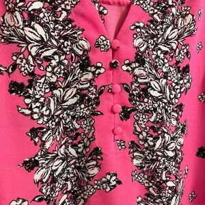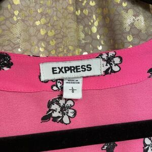 Express Bright Neon Hot Pink Black Floral Blouse, Large