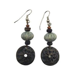 Express Bronze Sand Dollar Dangle Drop Silver Hook Earrings