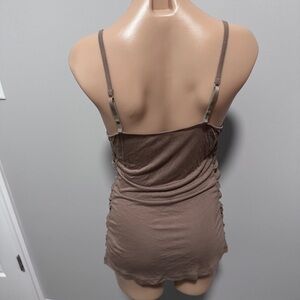 Express Brown Accordion Shimmer Glitter Tank Top Medium Ruffle Tinsel