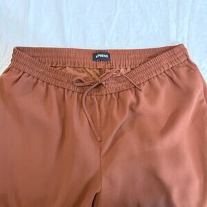 These brown cropped pants from Express feature a jogger-style silhouette with elasticized ankles and a comfortable elastic waistband. Made from lightweight material, they offer a relaxed fit perfect for casual outings.