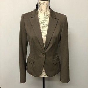 Stylish brown blazer. Single-button closure. Tailored fit. Perfect for professional settings. Never worn. Smoke and pet free home.