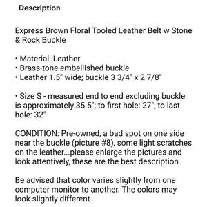 Express Brown Floral Tooled Leather Belt w Stone & Rock Buckle Size S Artisan