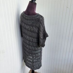 Express Brown Mohair Fuzzy Short Sleeved Metallic Thread Tunic Sweater Dress M D9
