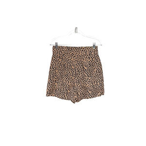 These Express women's sailor shorts feature a brown animal print pattern and are made with a mix of linen and rayon. Perfect for your summer wardrobe!