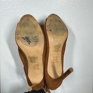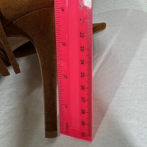 Express Brown Suede Leather Fringe Peep Toe Heeled Boho Western Booties Size 9