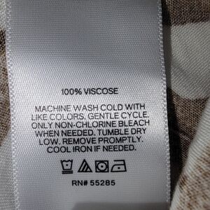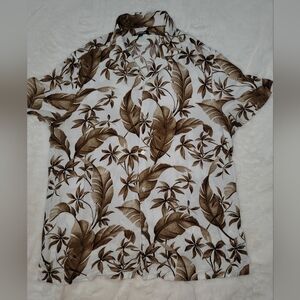 Elevate your casual wardrobe with this Express shirt, featuring a vibrant tropical print in brown and white. The relaxed fit and button-down style make it perfect for laid-back outings, while the intricate palm tree and fruit motifs add a touch of exotic flair.