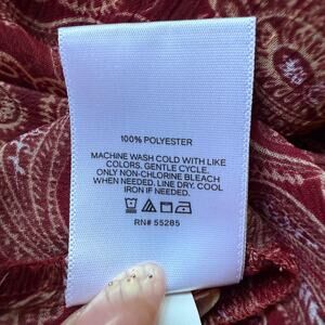 Express Burgundy Paisley Long Sleeve Sheer Button Front Blouse Large Office Fall