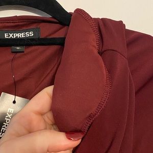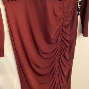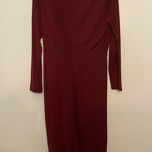 Size medium, long sleeve midi dress. Rouching at waist. Shoulder pads sewn in can be removed.