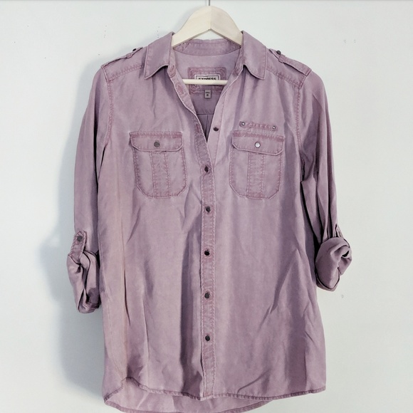 Express Boyfriend Fit Button Down Mauve Pink Size XS Convertible Long Sleeve with Roll Up Tab Chest Pockets
