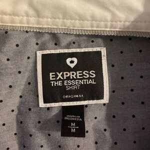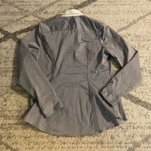 Express Button Down Collared Shirt Gray White Collar Black Polka Dots