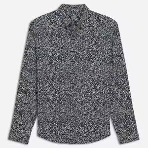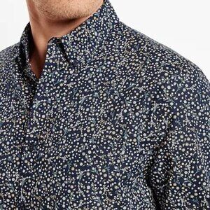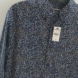 Express Button Down Shirr Blue Floral Print Stretch Cotton Mens Size Small