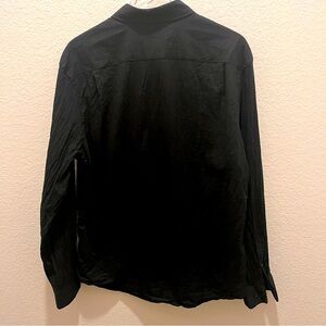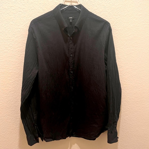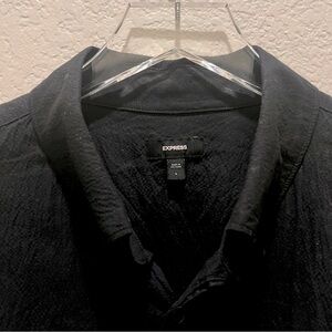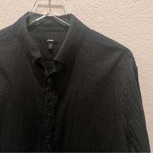 Black button down shirt from Express. It is a softer dress shirt. Not the normal stiff cotton button down. It is a bit lighter, less formal, but gives a nice, put together look. No holes or stains.
