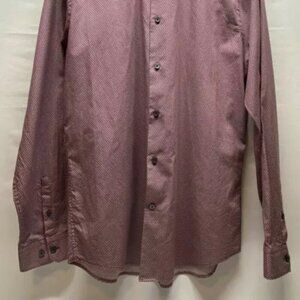Express Button Down Shirt Men's Large Burgundy White Geo Print Extra Slim Fit