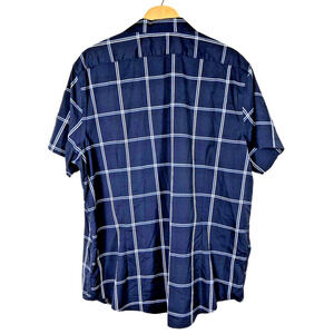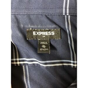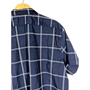Express Button Down Shirt XL Mens Windowpane Plaid Check Navy Blue & White S/S