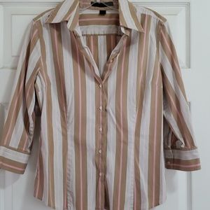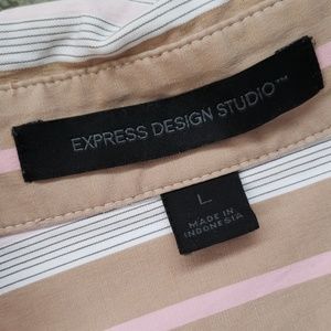 Striped Express Design Studio long sleeved button down shirt. Various sizes stripes in white, tan, and pink. I love this with a pair of brown pants and pink shoes.