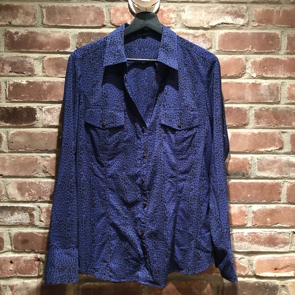 Violet Animal Print Button Up Express Blouse. Size Extra Large.