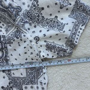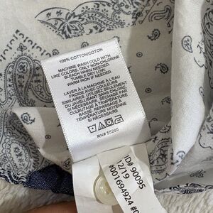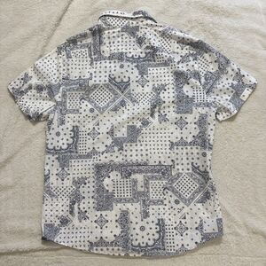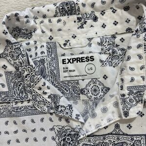 Express Button Up Shirt Mens Large Slim White & Blue All Over Print Short Sleeve