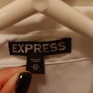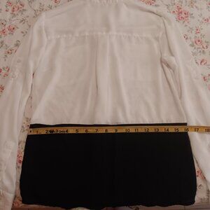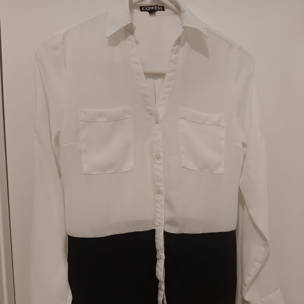 Express color block white and black collared button down. 100% polyester, XS.
