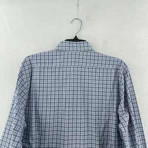 Express Button-Up Shirt Men's Sz L Purple Slim Fit Plaid Collared Curve Hem