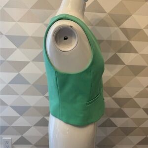 Stylish green button-up vest. Features a sleek design with front pockets.