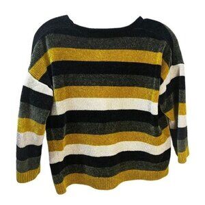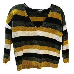 Express CHENILLE Sweater Striped V-Neck Knit Stretch Pullover XS