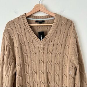 Express Cable Knit V-Neck Sweater in Tan NEW Size Large