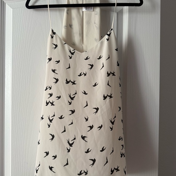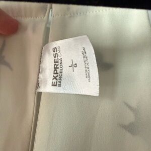 Elegant dress with a subtle black pattern. Soft cream fabric. Perfect for any occasion.