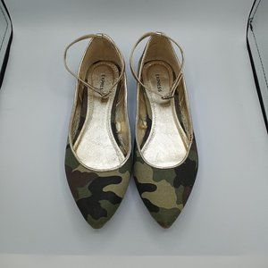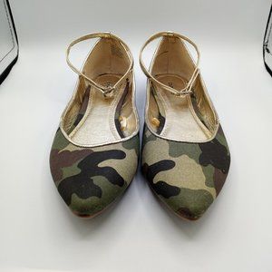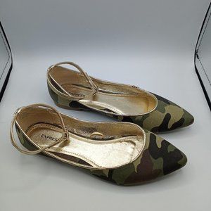 Express Camo & Gold Ankle Strap Flats