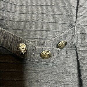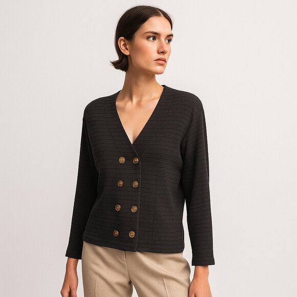 vintage express sweater, 90s cardigan, Hong Kong label express, black gold button cardigan, double breasted sweater, vintage express jacket, retro black cardigan, 90s preppy blazer, y2k minimalist cardigan, old money aesthetic sweater, ribbed knit top, gold button knit jacket, timeless vintage piece, vintage hong kong express, retro preppy top, 90s office cardigan, classic black knit blazer, vintage minimalist style, compagne internationale express, 1990s women sweater, preppy vintage fashion, black ribbed cardigan, vintage fashion piece, elegant 90s knitwear, old money cardigan, heritage fashion sweater, tailored knit top, vintage gold button jacket, grandmacore luxe, power dressing 90s, elevated vintage cardigan, fashion history sweater, chic office cardigan, vintage minimalist knit, black button