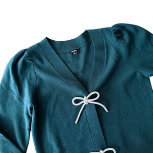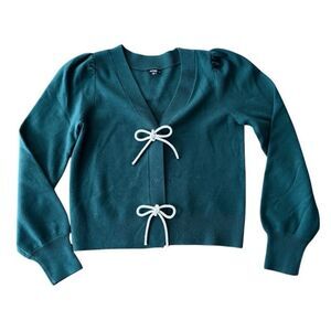 Express Cardigan Bow Button Sweater Small Green