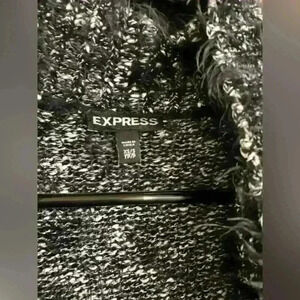 Express black and white cardigan size XS. Great used condition. Extremely soft. In my opinion this is oversize and would also fit a size small. Small amount of faux fur, has a fringe look to it. Very cute and would be a great layering piece. Very classy.