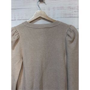 Express Cardigan Womens Size S V-Neck Puff Shoulder Sweater Stretch Knit 1022
