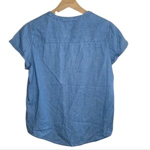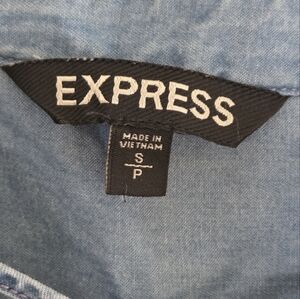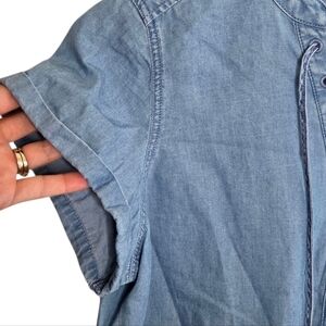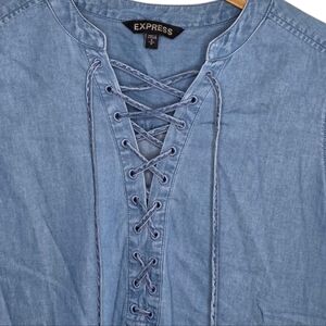 Express | Chambray Denim Blue Lace-Up Short Cuffed Sleeve Shirt Size Small
