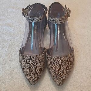 Express Cheetah Print Vintage Ankle Strap Pointy Toe Kitten Heel D'Orsay Sandals