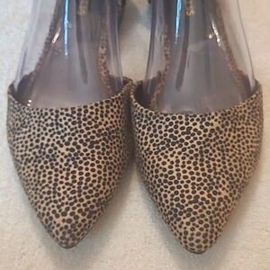 Bold, edgy yet sophisticated Express ankle strap D'Orsay sandals. You will love the exotic cheetah print on these sharp looking flats. These fierce statement sandals pair great with a maxi dress or suit preppy professional look! Pair these sleek, fun print shoes with jeans and a casual blouse for a more minimalist chic vibe.