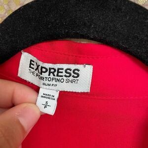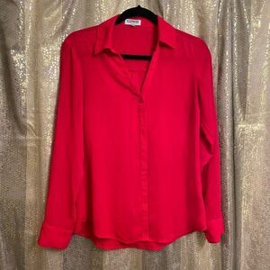 Express Cherry Red Slim Portifino Button Down Blouse, Size Small