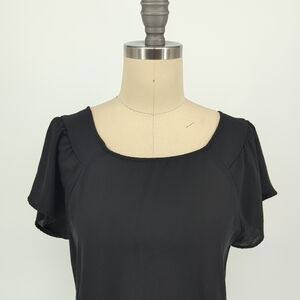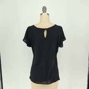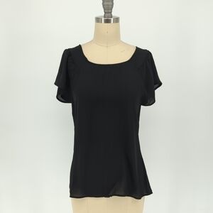 Express Chiffon Blouse Top Black XS preppy Business casual office short sleeve