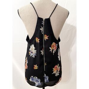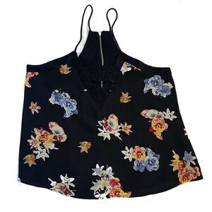Express Floral Lace Racerback Cami – Black Chiffon V-Neck Tank Top M