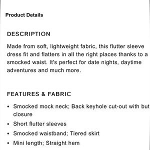 Express Chiffon Flutter Sleeve Smocked Waistline and 2 Button Closure with Keyhole at Neck.