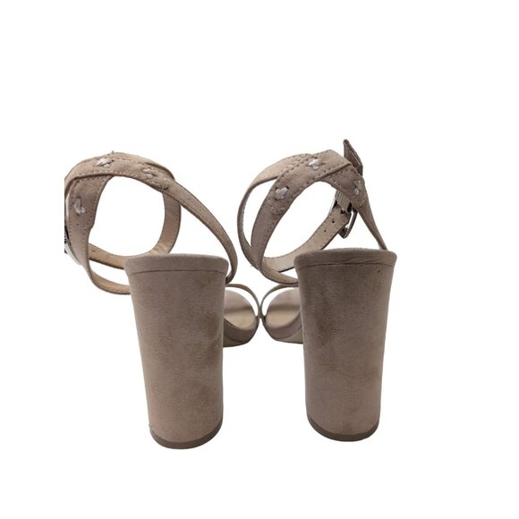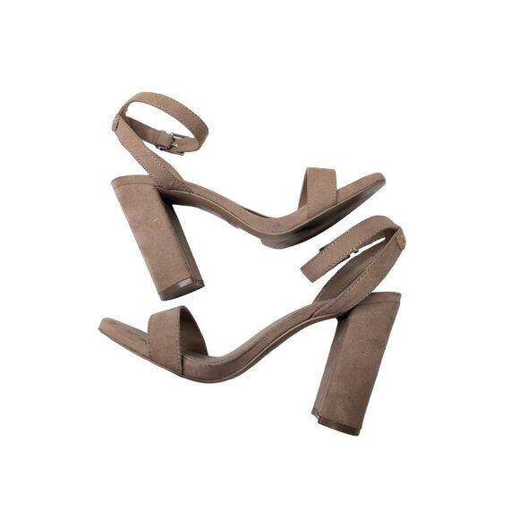 Express Chunky Heel Sandal Womens 7 Tan Faux Suede Dressy Open Toe Neutral