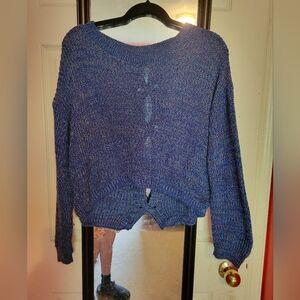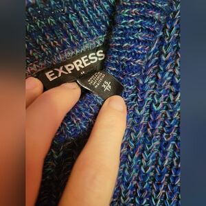 Express Chunky Knit Blue Rainbow Scoop Neck Sweater Cross Back High Low Size XS
