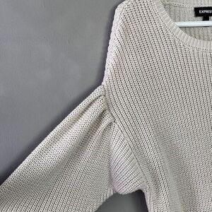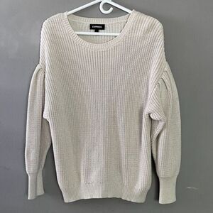 Express Chunky Knit Sweater Womens Drop Shoulder Slouchy Bell Long Sleeves Beige Sz M