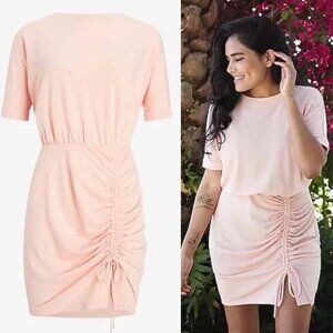Express Cinched Tie Side Skirt T Shirt Mini Dress Peachy Pink Size Large $60