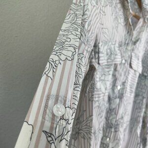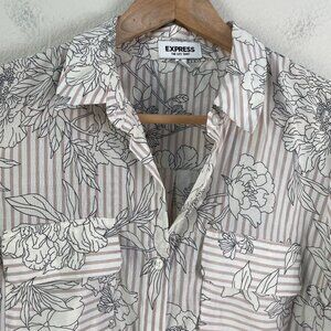 Express City Shirt Womens Small Floral Stripe Button Up Blouse Roll Tab Sleeve
