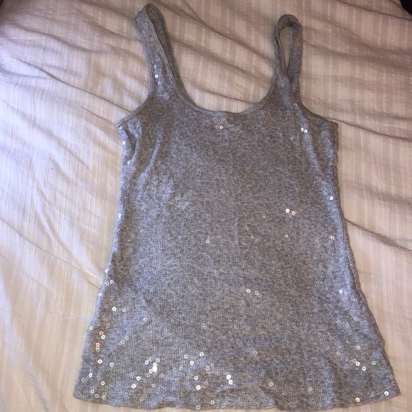 Clear sequins give off silver appearance. Sequins only on front of tank.