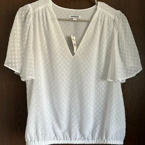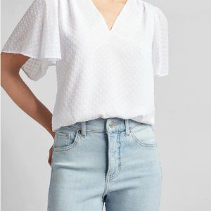 Express Clip Dot Flutter Sleeve Blouse - White - Size S