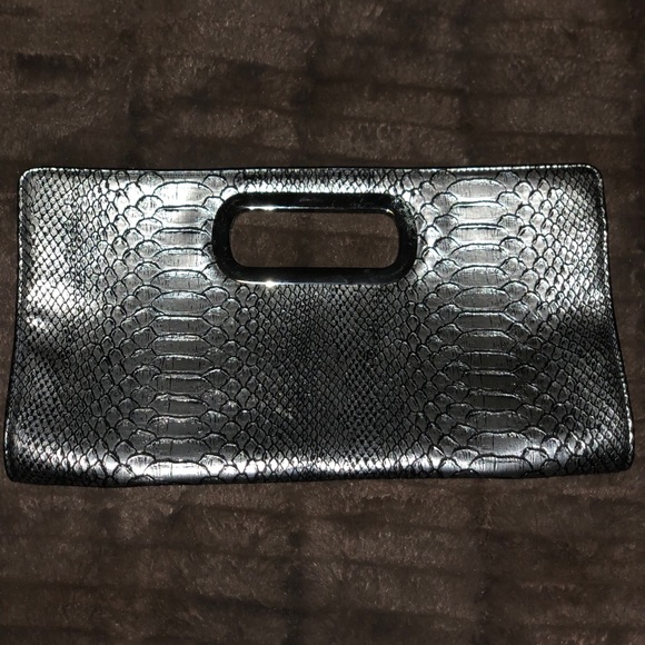 Silver Metallic faux snake skin clutch